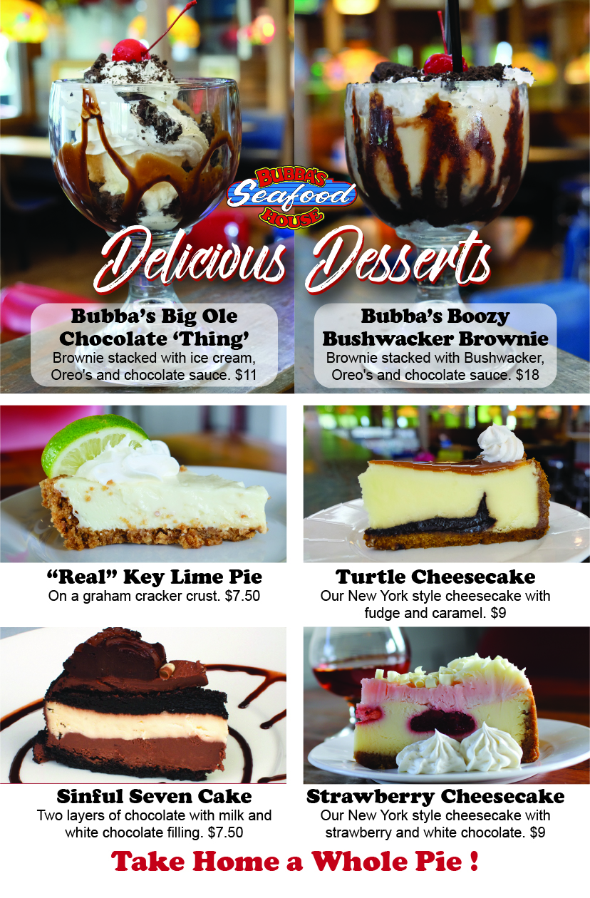 Bubba’s delicious shrimp po’boys, fresh fish, and juicy steamed crab legs are absolute favorites around here. Most of the locals and visitors order our large “build-your-own” seafood platter. Mmmmmm, so good!